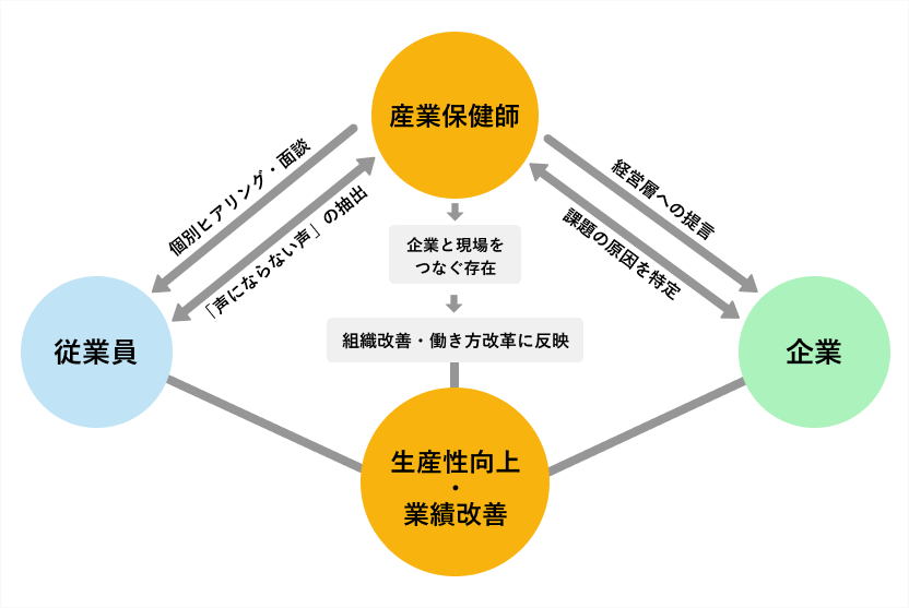 「企業の保健室」として、従業員の心身の健康支援を通じて、業務の質と効率の向上を支えることを強みとしています。